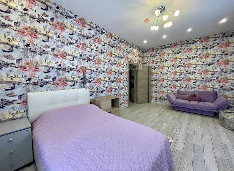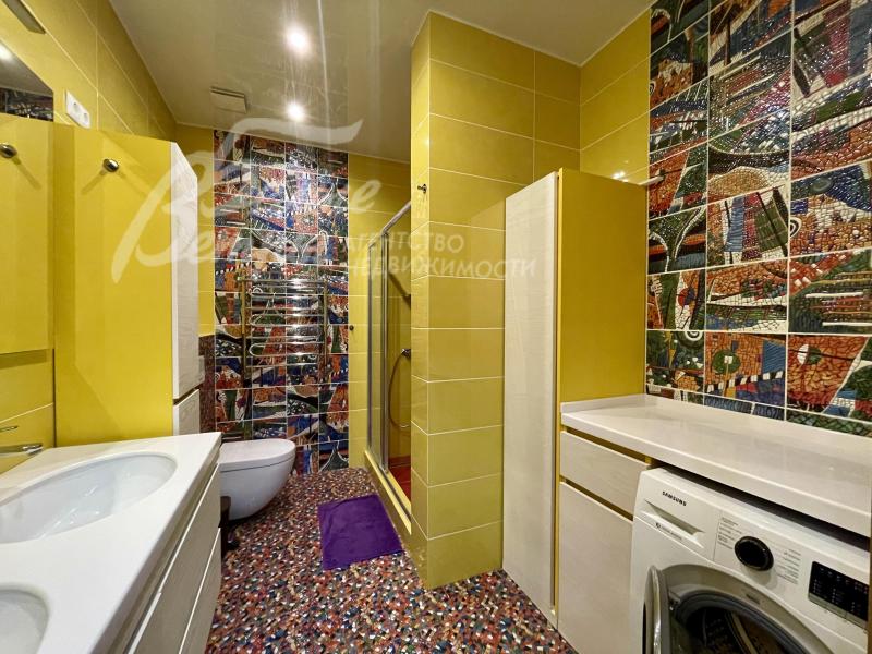 Мебель, оборудование: установлен кухонный гарнитур, выполненный под заказ из глянцевого МДФ (двухцветный - оранжевый и венге), присутствует остров с барным столом и стульями. Техника встроенная: посудомоечная машина, газовая панель, микроволновая печь, духовой шкаф - всё Kuppersberg, холодильник Liebherr, также в кладовой при кухне морозильная камера и дополнительный холодильник. ТВ Sony (в гостиной), пылесос Karcher, стиральная машинка Samsung. В зоне столовой стол, стулья, в гостиной диван, в спальнях кровати двуспальные, в гостевой спальне диван, есть зоны гардеробной. Занавески или рулонные шторы, люстры, светильники и встроенные лампочки в подвесных потолках.