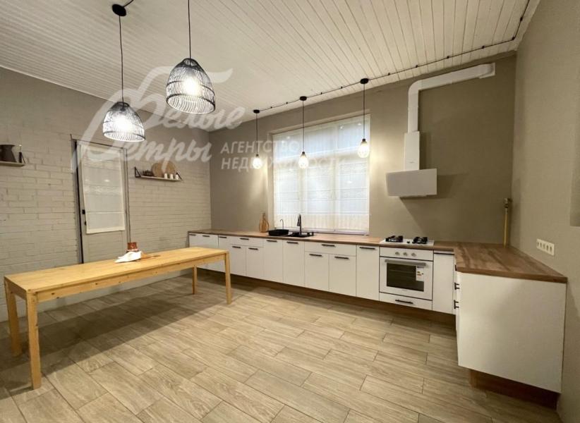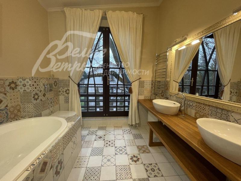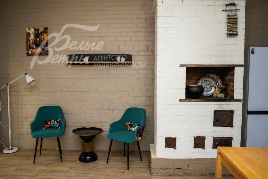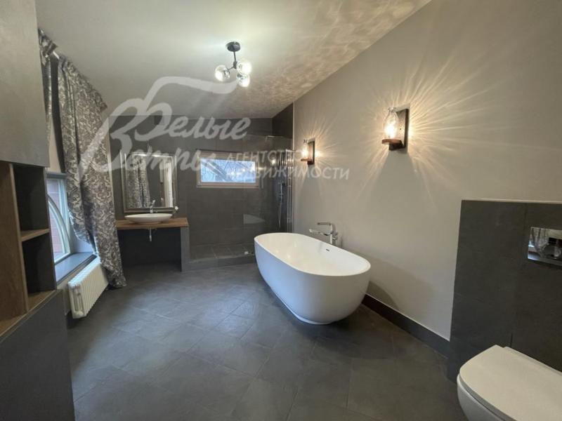 Мебель, оборудование: в доме стильная современная меблировка: в гостиной модульный диван, в мастер-спальне большая кровать с тумбочками, шкаф. В одной из спален две кровати, выполненные на заказ. В жилых комнатах - шкафы для одежды, полки, прикроватные тумбы, журнальный столик, кресла. Недостающая мебель будет куплена под запрос арендатора. Новый современный кухонный гарнитур со встроенной техникой Weissgauff: газовая варочная панель, духовой шкаф, посудомоечная машина, а также вытяжка, двухдверный холодильник Weissgauff - вся техника абсолютно новая. Обеденный стол из массива дерева. На кухне русская печь, на которой можно готовить традиционные блюда. Стиральная и сушильная машина Tuvio, телевизор в гостиной. Во всех помещениях карнизы, шторы, занавески. Дизайнерские светильники и люстры, трековые светильники, картины и прочее. В беседке - уличная мебель (диван, кресла, тумба, журнальный столик).