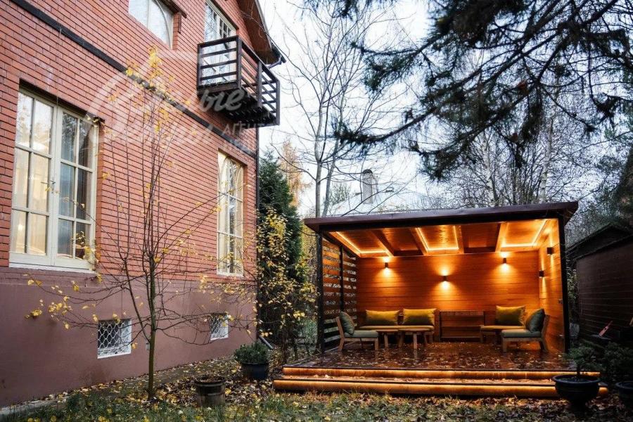 Дополнительные строения: - Крытая беседка с террасой для отдыха, с деревянной садовой мебелью и красивой вечерней подсветкой