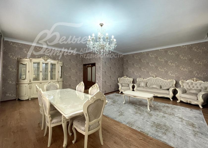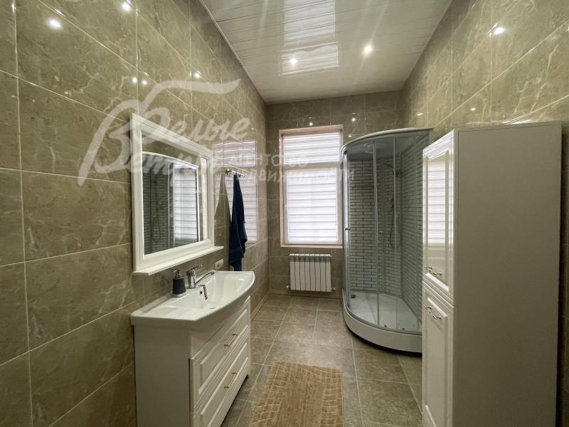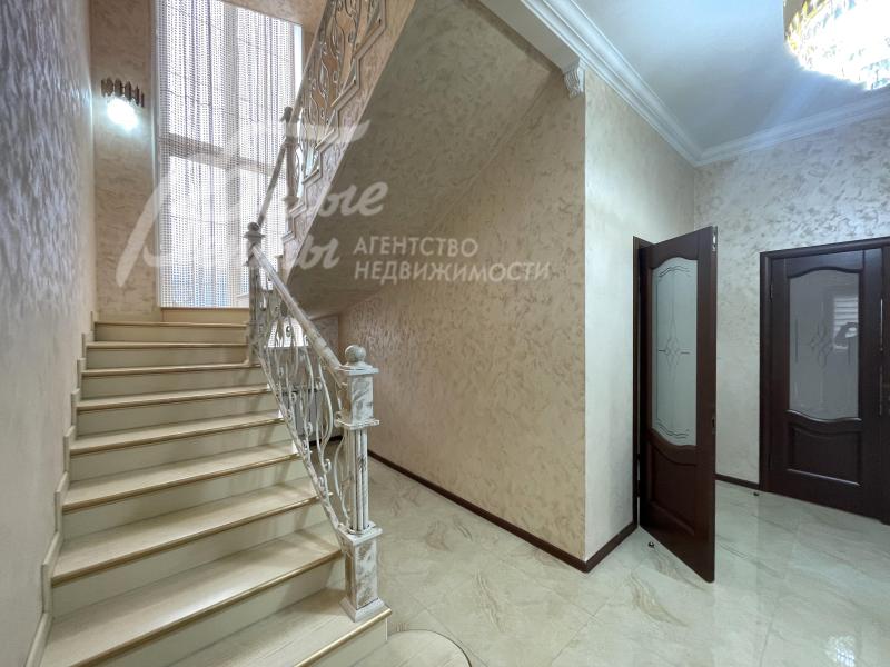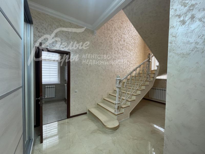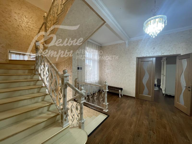 Описание внутренней отделки: отделка в классическом стиле: в общих помещениях декоративная штукатурка ("песок"), в спальнях обои. В санузлах импортная плитка от пола до потолка. Полы: ламинат в гостиной и спальнях; прихожая, зона кухни и столовой - керамогранит. Потолки штукатуренные, покрашенные. Красивая лестница с кованым ограждением.