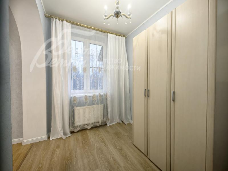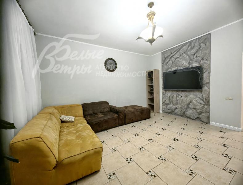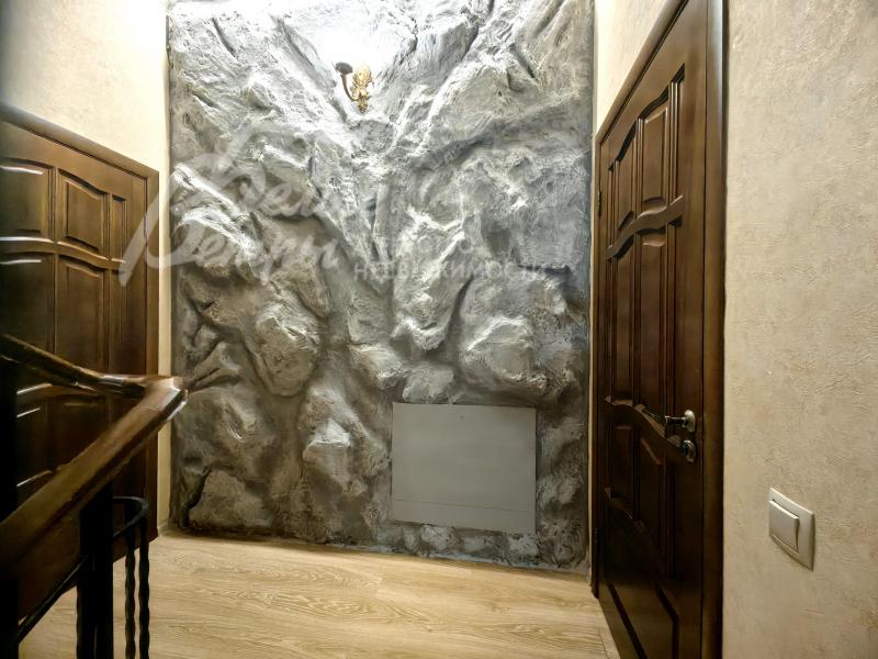 Описание внутренней отделки: стильная отделка в светлых спокойных тонах. Филенчатые двери со стеклом. На стенах - обои и декоративная штукатурка, в санузлах - плитка. На полу ламинат, в санузлах - теплые полы.