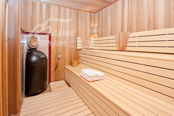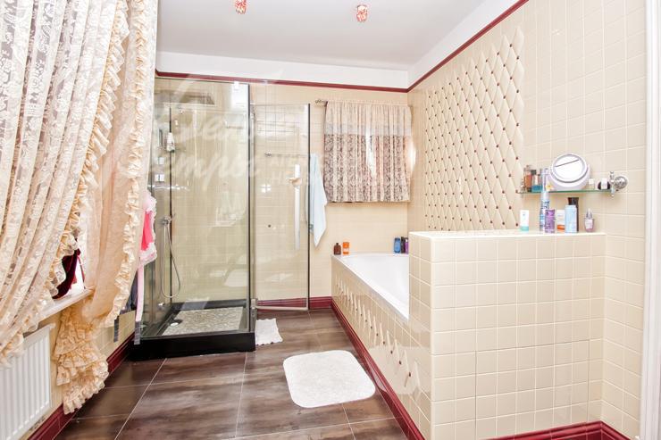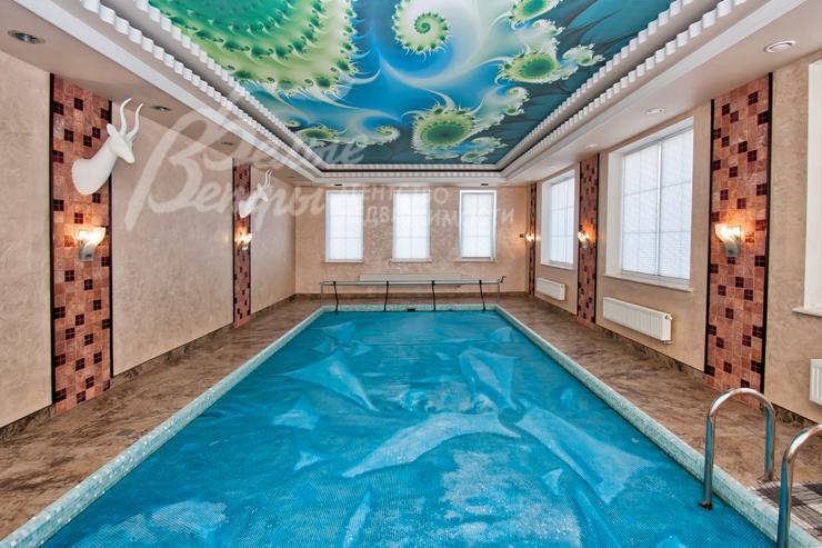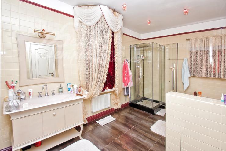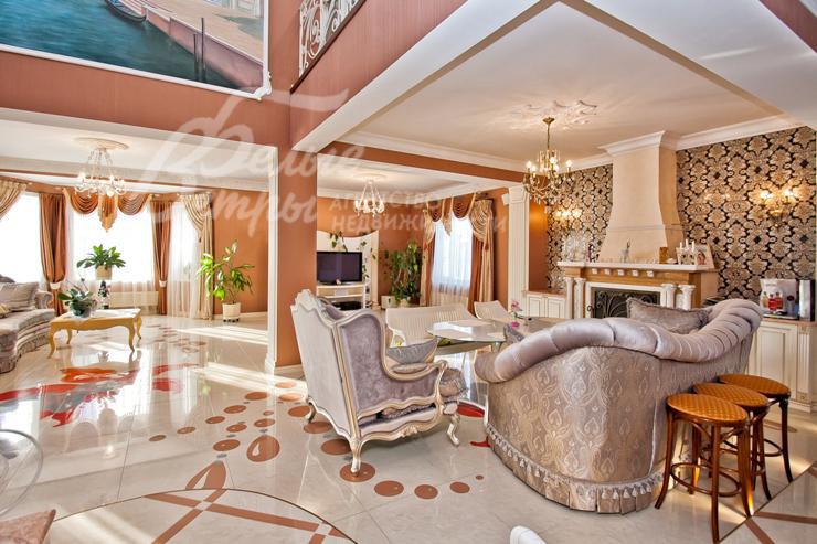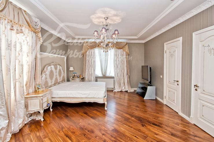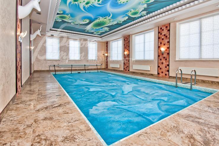 Изысканный дом в стиле ар-деко уровня De Luxe с большим бассейном. Эксклюзивная отделка и мебель. Венецианская штукатурка, гобелен, лепнина, фрески, лестница, подоконники и столешница кухни из мрамора, бытовая техника Miele. Гараж с квартирой для персонала, беседка, парковка для 2-х м/м, большая терраса на 2-ом этаже, сауна, камин. Видеоролик