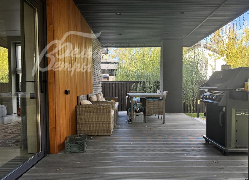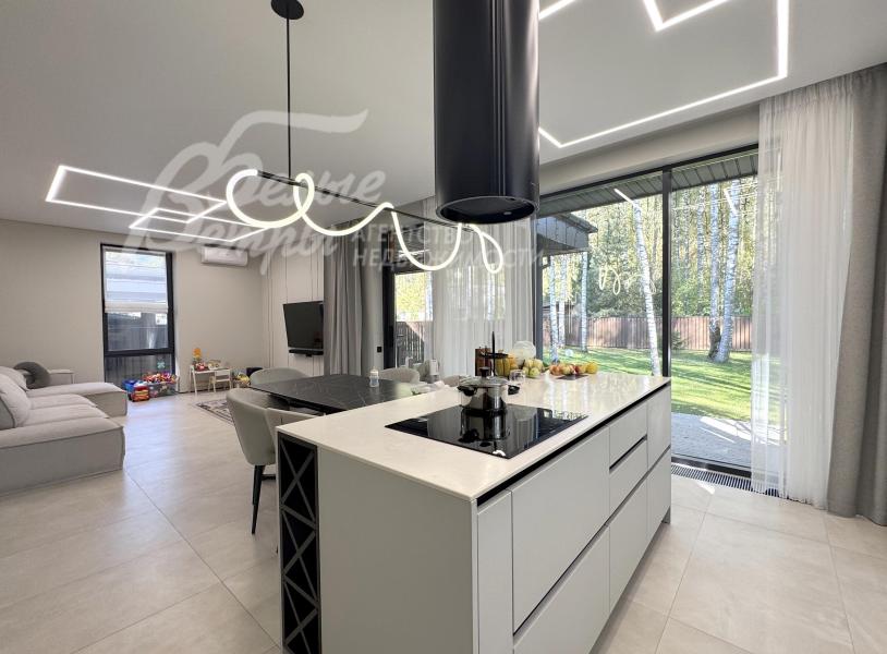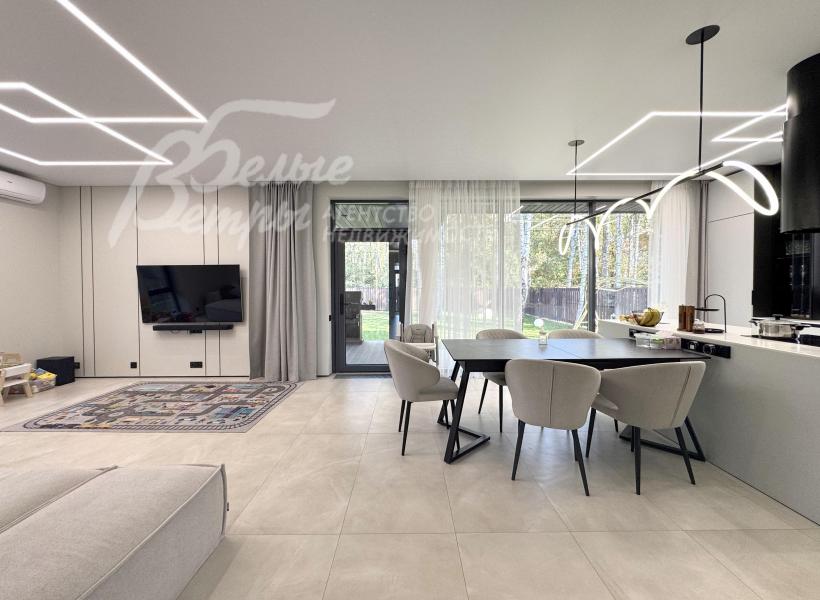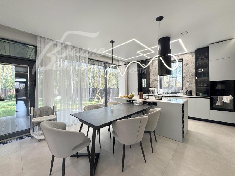 Дом, полностью меблированный и оснащённый техникой: можно заезжать и жить без дополнительных вложений. Внешнее оформление – в духе актуальных тенденций: фасад отделан ригельным кирпичом и лиственницей. Во внутренней отделке также реализованы современные решения в стиле минимализма: скрытый карниз на потолке со световыми линиями, двери скрытого монтажа, несколько сценариев освещения и другие. В доме – безупречная планировка: одна из спален – на 1-м этаже, есть терраса, много помещений для хранения. Дом стоит на компактном благоустроенном участке в березовой роще. Участок находится на второй линии от леса в коттеджном посёлке комфорт-класса с каскадом озёр и круглосуточной охраной с патрулированием.